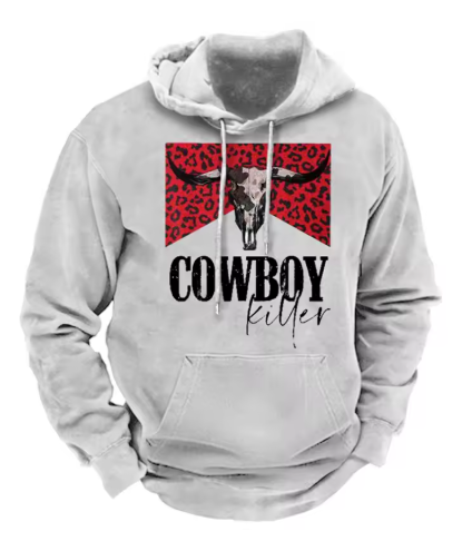 Embrace the spirit of the Old West with our bold, Cowboy-Themed Hoodies. Each design features an attention-grabbing graphic—ranging from the red leopard print backdrop to the rugged bucking bronco silhouette and the iconic longhorn skull—that fuses rebellious Western flair with modern street style. A soft, high-quality fabric blend ensures all-day comfort, while the adjustable drawstring hood and classic kangaroo pocket add practical appeal. Whether you choose the outlaw-inspired “Cowboy Killer,” the action-packed “Wild West,” or the iconic longhorn motif, these hoodies make a fearless statement and keep you cozy wherever the trail leads.